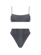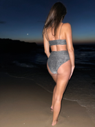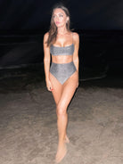 Shimmer High Waist Bikini-Silver Black