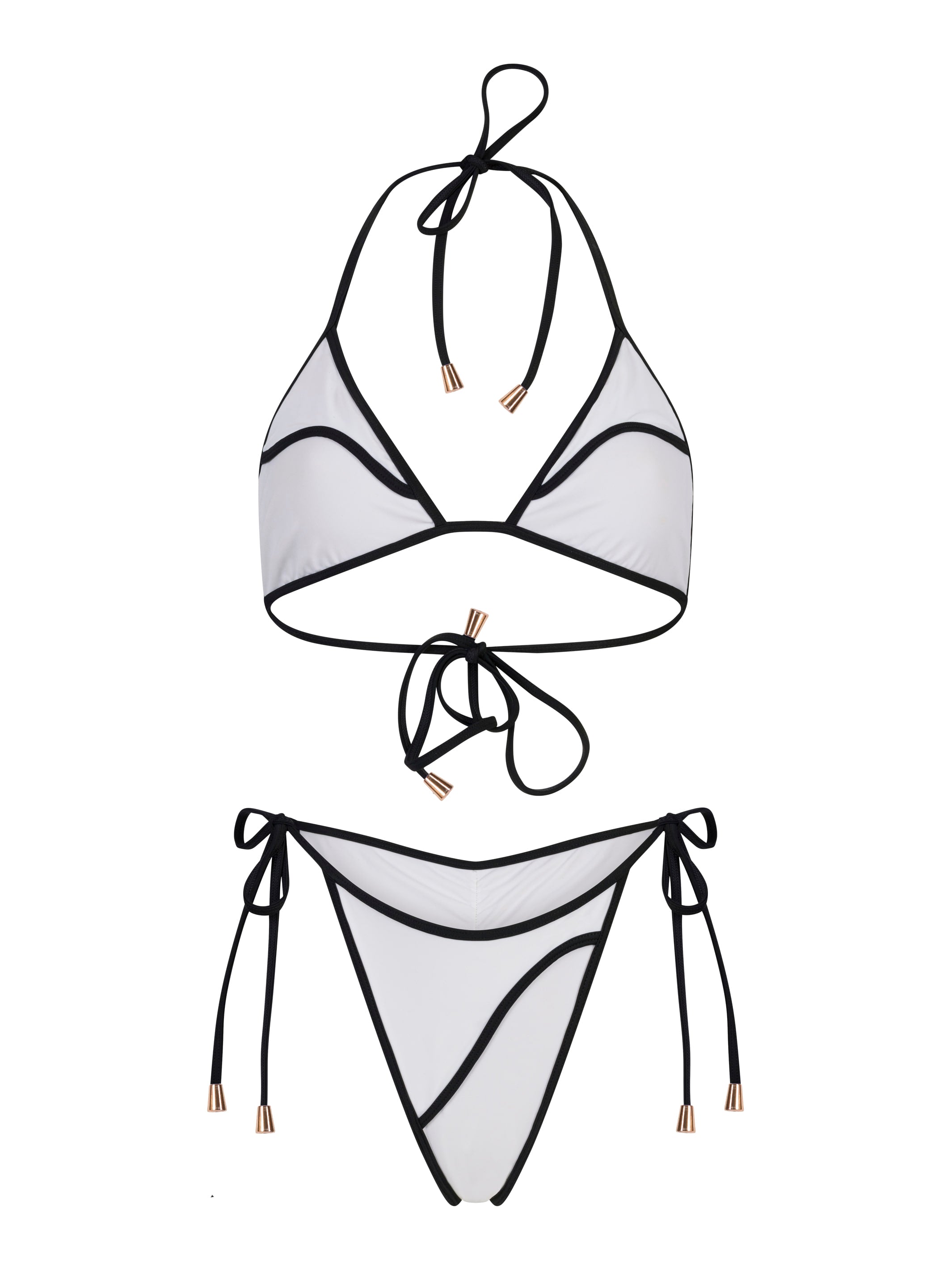 ביקיני יוקרתי בגזרת משולשים – דו־צדדי. עיצוב על־זמני שמשלב קלאסיות נקייה עם נגיעה מודרנית של אלגנטיות